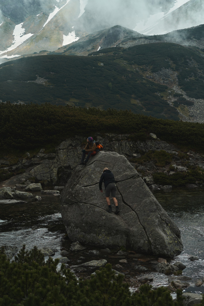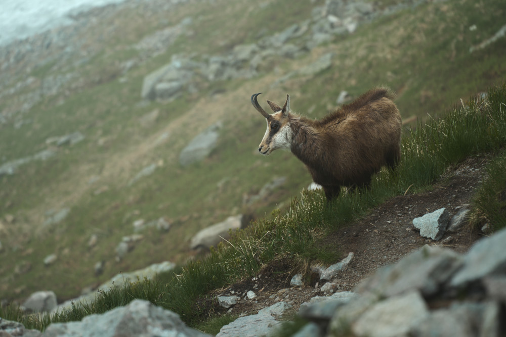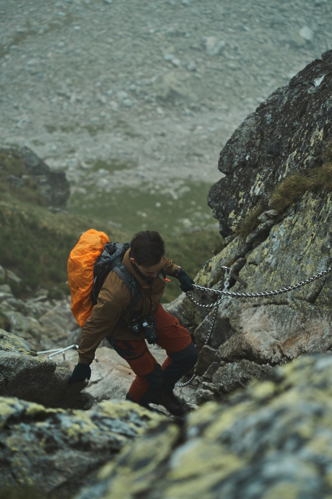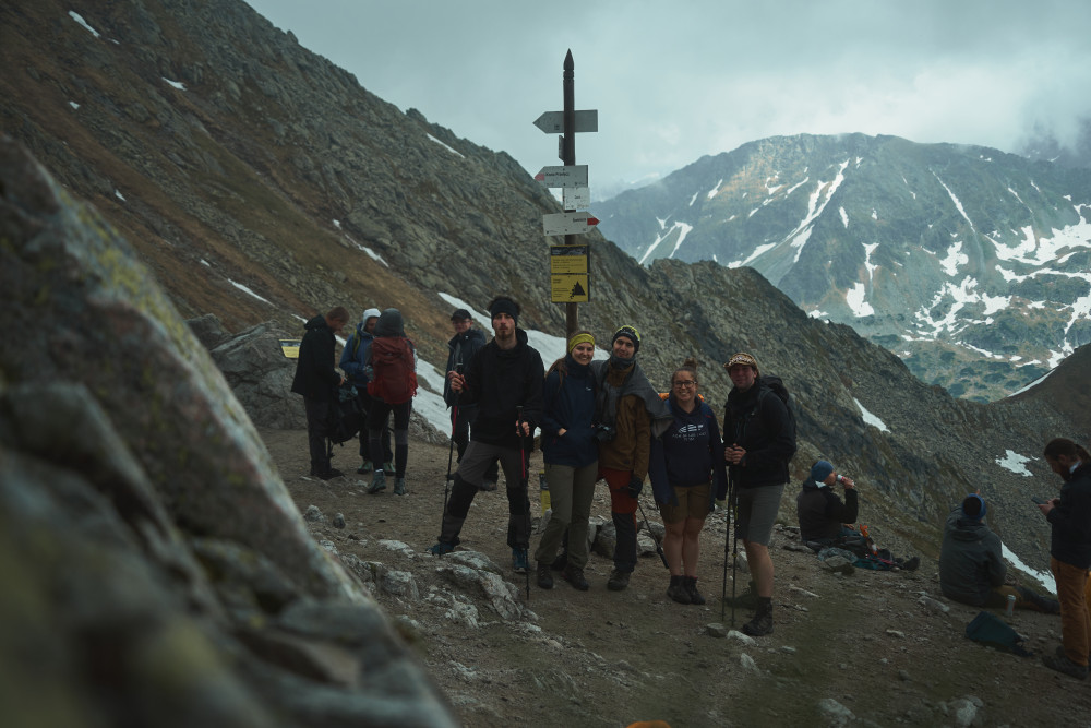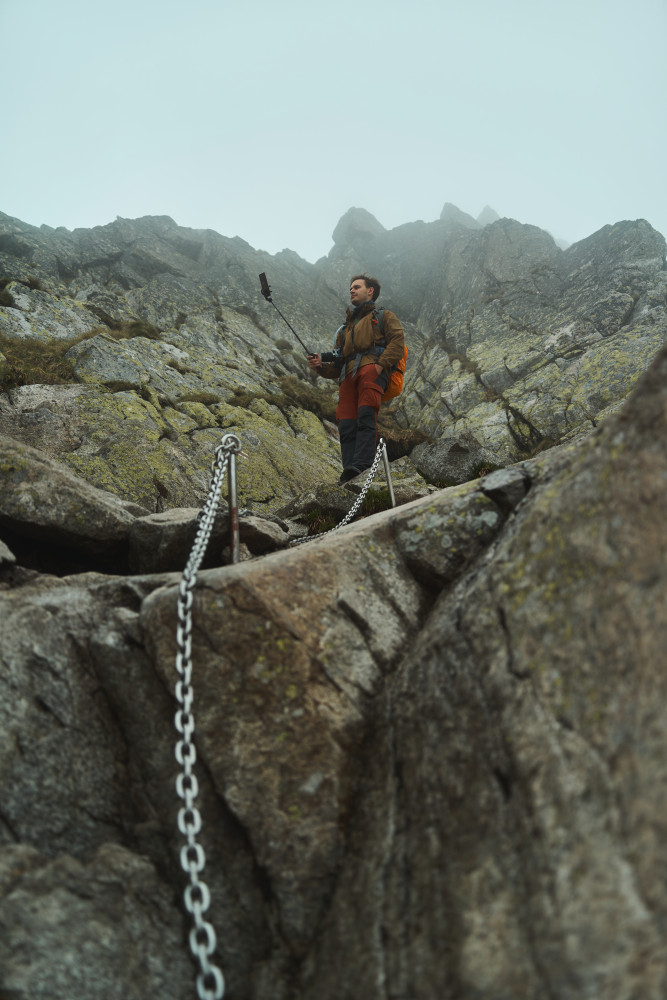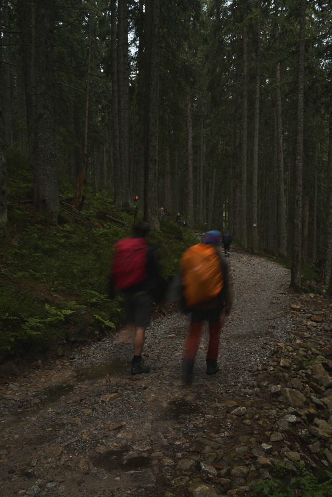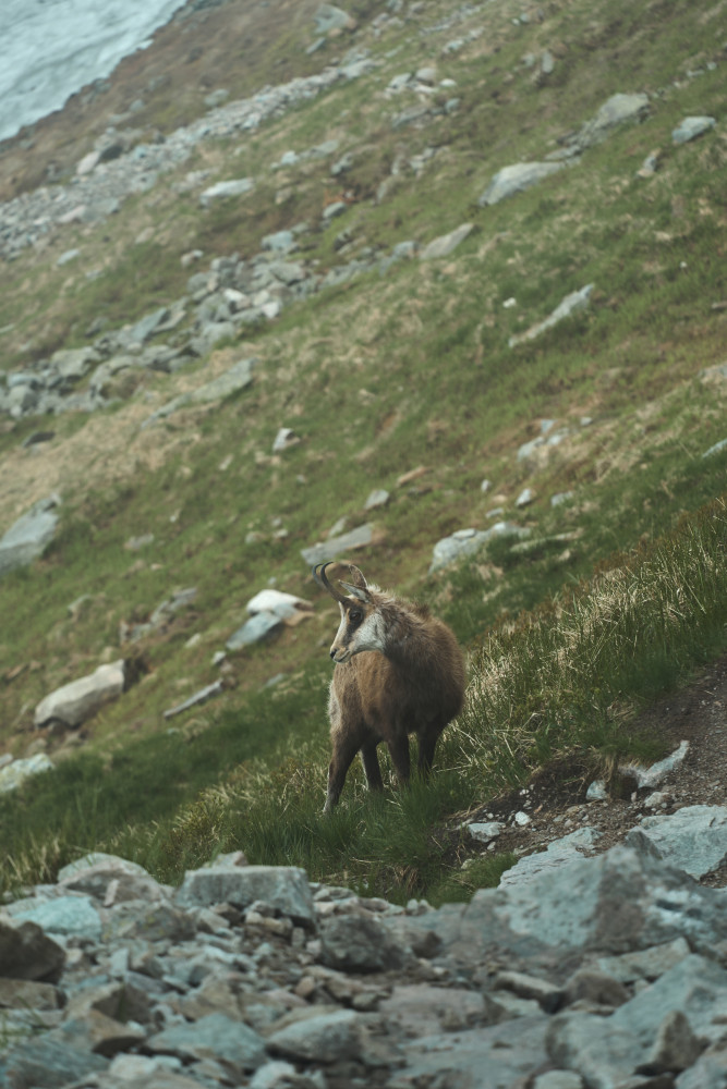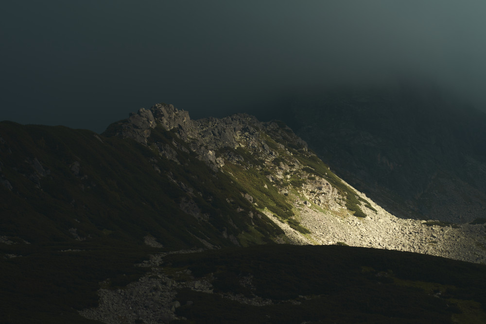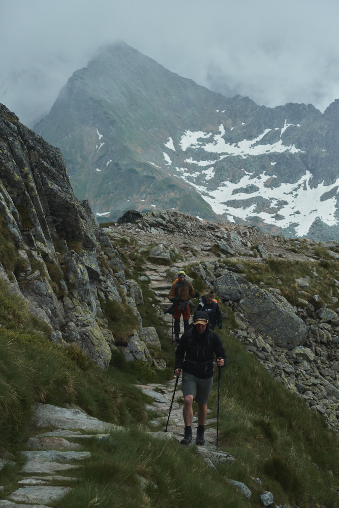 Zaczęło się jednak niepewnie, bo w drodze do „Piątki” złapał nas niemały deszcz, lecz na szczęście po zmoczeniu części naszych ubrań padać przestało. Wtedy też wyciągnąłem aparat i zacząłem robić pierwsze zdjęcia. Już wtedy wiedziałem, że to będzie dobry wypad! Po dłuższym posiedzeniu w schronisku i podsuszeniu rzeczy ruszyliśmy dalej w stronę Zawratu. Po drodze goniły nas pełne wilgoci chmury, jednak ostatecznie do końca dnia już nie padało. Na Zawracie zdjęcie grupowe i podział ekipy, gdzie część zdecydowała zejść na dół, a ja wraz z kumplem ruszyliśmy dalej – na Świnicę. Na łańcuchach wrażenia dość mocne, szczególnie że człowiek odwykł od Tatr i na ściance wspinaczkowej dawno nie był. Im wyżej byliśmy, tym bardziej wchodziliśmy w chmury, więc po krótkim odpoczynku w tej mgle na szczycie ruszyliśmy dalej i dopiero za Świnicką Przełęczą odzyskaliśmy widoczność. I tu zaczęły się ekscytujące wrażenie estetyczne, ponieważ oprócz spotkania kozicy, trafiliśmy do naprawdę pięknej Zielonej Doliny Gąsienicowej (nigdy wcześniej nią nie szedłem)! Oprócz tego wrażenia potęgował prawie całkowity brak ludzie oraz słoneczko, które mimo chmur raczyło na kilka chwil przepięknie oświetlić dolinę. Efekty w galerii poniżej!
