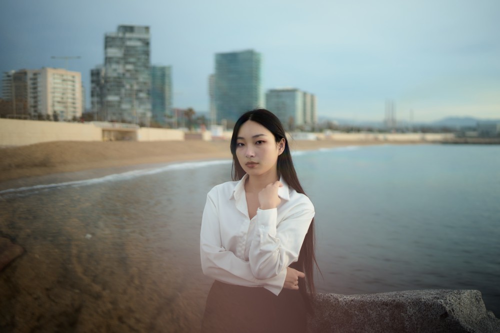 Wiem, że cała sesja bardzo się podoba, więc wrzucam ją w końcu na bloga. Pewnie się zastanawiacie, jak w ogóle doszło do tego spotkania. Cóż, byłem w marcu w Barcelonie na kilka dni zwiedzania i mimo że od dawna planowałem zrobić tam przy okazji jakąś sesję, to oczywiście nic w tym kierunku nie zrobiłem oprócz zabrania ze sobą Samyanga 45. I tak na zwiedzaniu minęło pół wyjazdu, ale któregoś popołudnia się zmobilizowałem i zacząłem szukać grupki fotografii TFP w Barcelonie. Niestety nic nie znalazłem, więc ruszyłem na przeszukiwanie Instagrama przy pomocy #barcelonamodel i tak znalazłem Fei! Umówiliśmy się z dnia na dzień i tak oto powstały te zdjęcia. Głupio było nie zahaczyć o plażę będąc w Barcelonie, choć ja głównie uparłem się na metro, mając w głowie kadry z filmów Kar-Wai Wonga ;)