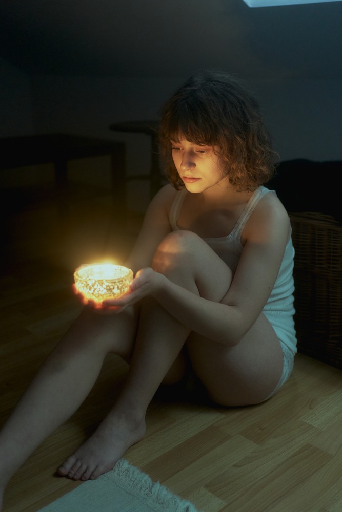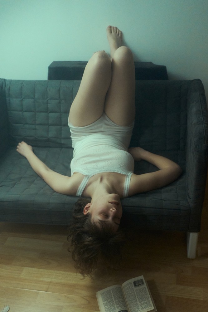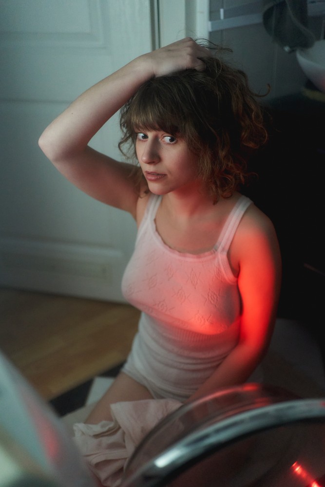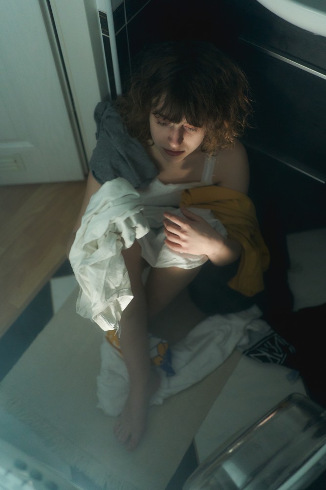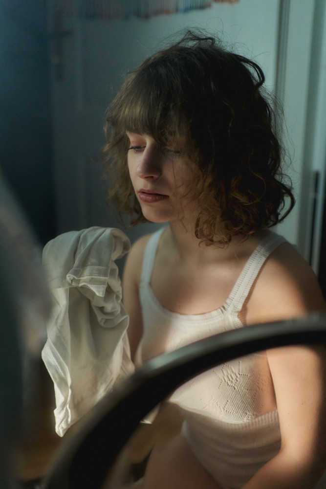 Ależ to była nudna sesja! Nie no, powiedzmy sobie szczerze – tym razem miałem konkret pomysł na zdjęcia. Nieczęsto mi się to zdarza, zwykle jest mniejszy lub większy spontan i zawsze coś wychodzi. A pomysł był taki, że robimy jedną scenę, kilka różnych ujęć, to samo światło (swoją drogą dwie lampy zamocowane na oknach dały super efekt) i Patrycja w wymyślanych przez siebie pozach znudzonej dziewczyny, która nie wie co ze sobą począć. Skończyło się na czytaniu książki i siedzeniu przy świeczce, a potem ruszyliśmy na podbój… łazienki. Tak dokładnie, koncepcja zdjęć z pralką już od dawna chodziła mi po głowie. Szczególnie fajne są właśnie te sprzęty AGD, do których można włożyć dym i światło ;) Wyszło super ładnie, choć bez większego sensu – ot co, pralka się zepsuła, zaczęła świecić na czerwono i się dymić. Przecież tak się zachowuje każda pralka, która się zepsuje.