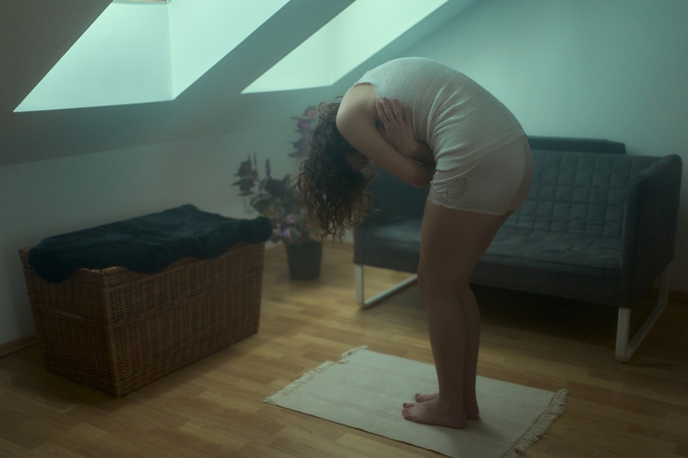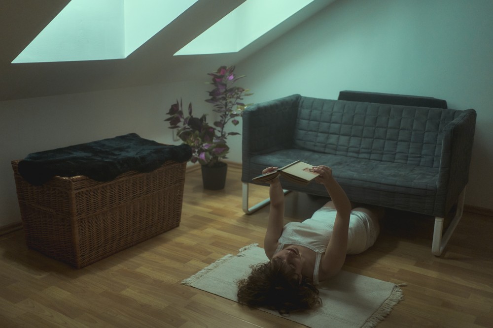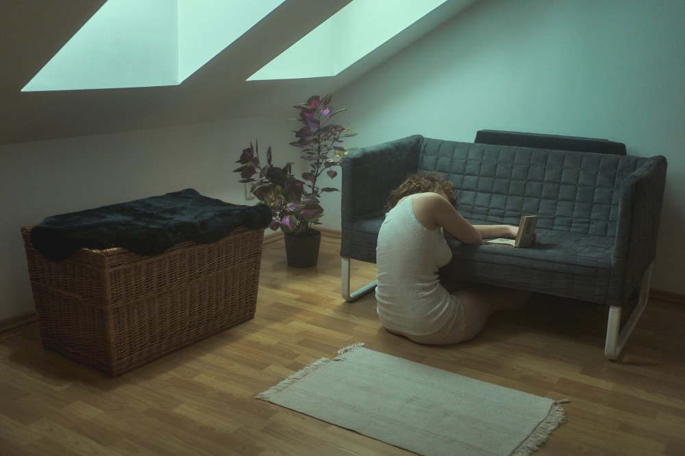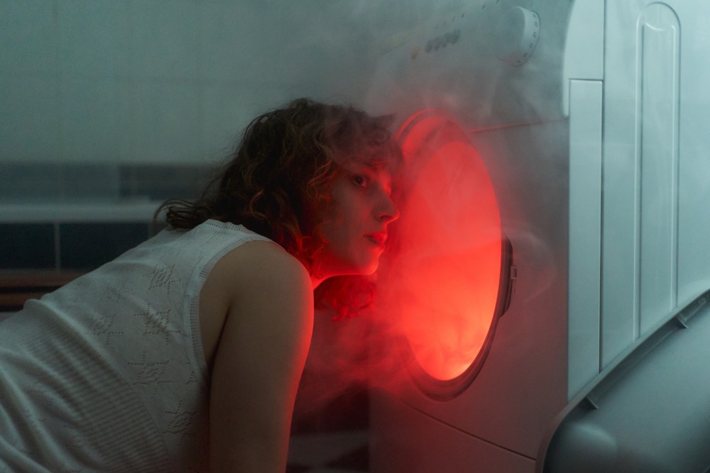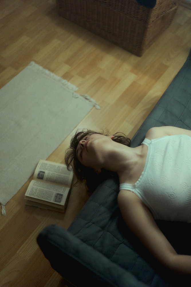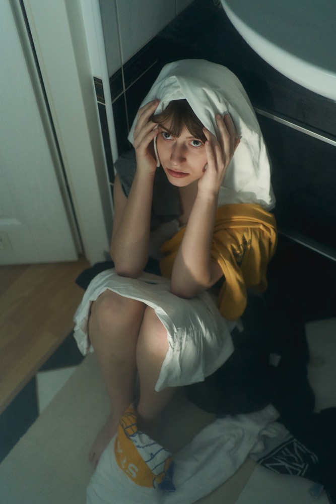 Ależ to była nudna sesja! Nie no, powiedzmy sobie szczerze – tym razem miałem konkret pomysł na zdjęcia. Nieczęsto mi się to zdarza, zwykle jest mniejszy lub większy spontan i zawsze coś wychodzi. A pomysł był taki, że robimy jedną scenę, kilka różnych ujęć, to samo światło (swoją drogą dwie lampy zamocowane na oknach dały super efekt) i Patrycja w wymyślanych przez siebie pozach znudzonej dziewczyny, która nie wie co ze sobą począć. Skończyło się na czytaniu książki i siedzeniu przy świeczce, a potem ruszyliśmy na podbój… łazienki. Tak dokładnie, koncepcja zdjęć z pralką już od dawna chodziła mi po głowie. Szczególnie fajne są właśnie te sprzęty AGD, do których można włożyć dym i światło ;) Wyszło super ładnie, choć bez większego sensu – ot co, pralka się zepsuła, zaczęła świecić na czerwono i się dymić. Przecież tak się zachowuje każda pralka, która się zepsuje.